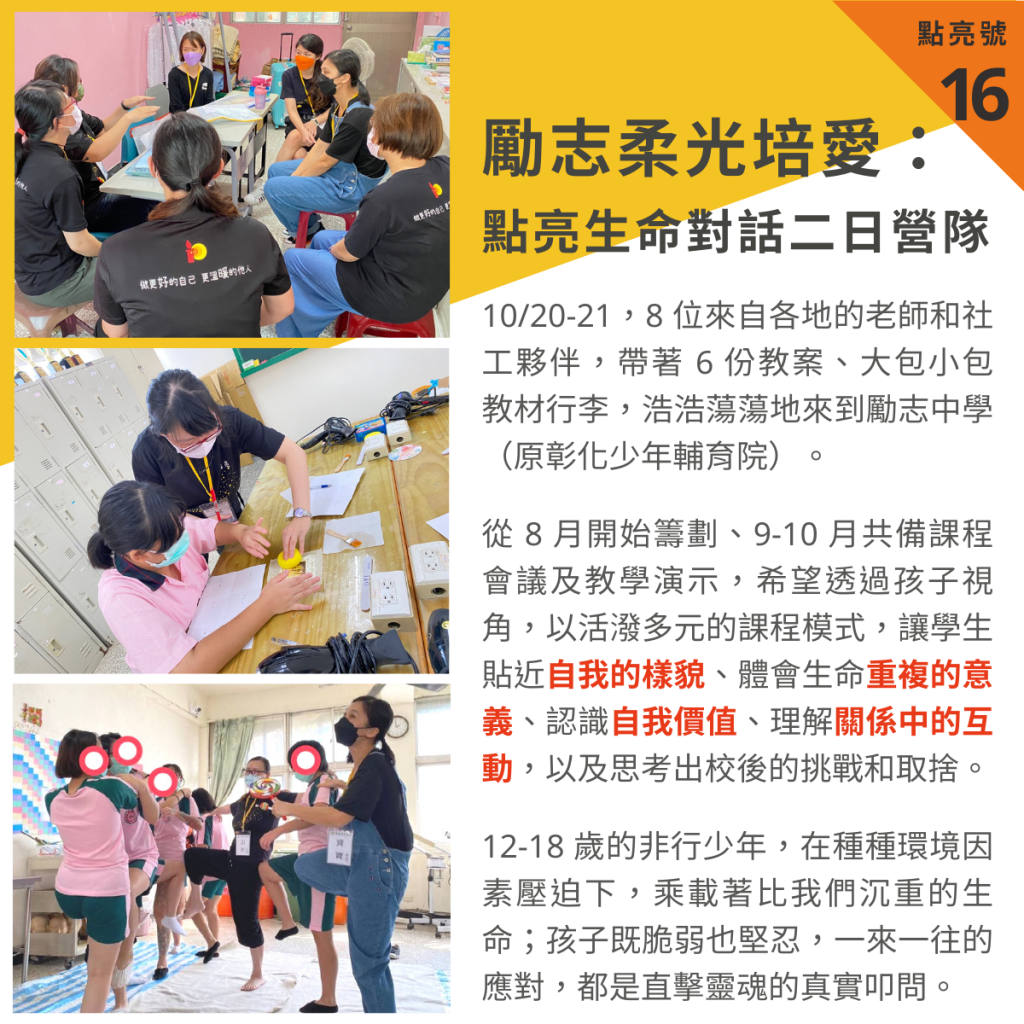 By AELE點亮 Posted 2022-11-23 In 點亮文刊 點亮文刊 No.162022-11-232022-11-23https://www.aele.org.tw/wp-content/uploads/2022/01/line_oa_chat_220104_155027.jpg點亮生命https://www.aele.org.tw/wp-content/uploads/2022/11/unnamed-file.png200px200px 0 0 Post Views: 78 半年刊, 幸福, 思考, 思辨, 愛, 改變, 教育, 校園, 生命教育, 練習, 課程, 點亮 Recommended Posts點亮愛分享|創價學會X簡丞佐老師 – 每天花幾分鐘與自己對話01.3-思辨專欄|博愛座,坐了就不博愛?(彭川耘)01.4-教學專欄|喚醒孩子柔軟的心(徐茂瑋)點亮文刊 No.15