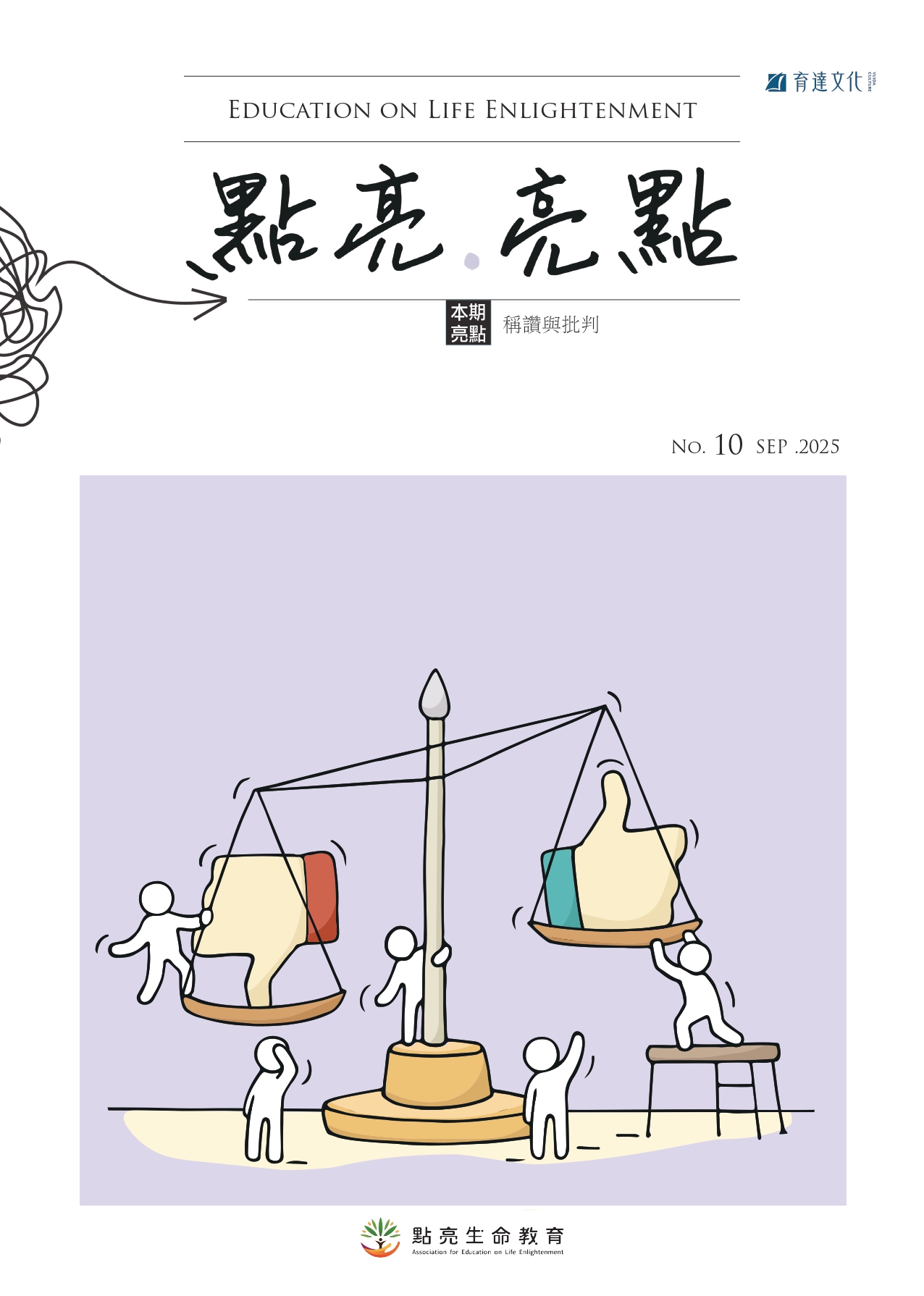 《點亮.亮點》刊由點亮X育達文化合作編製,每年一、五、九月出版一期,內容含括生命教育內涵及多元面向,並規劃「互動錦囊」單元,提供適合於課堂中使用的教案素材,期望本刊不僅是老師們溫暖、輕鬆的閱讀選項,也是最實用的工具書。