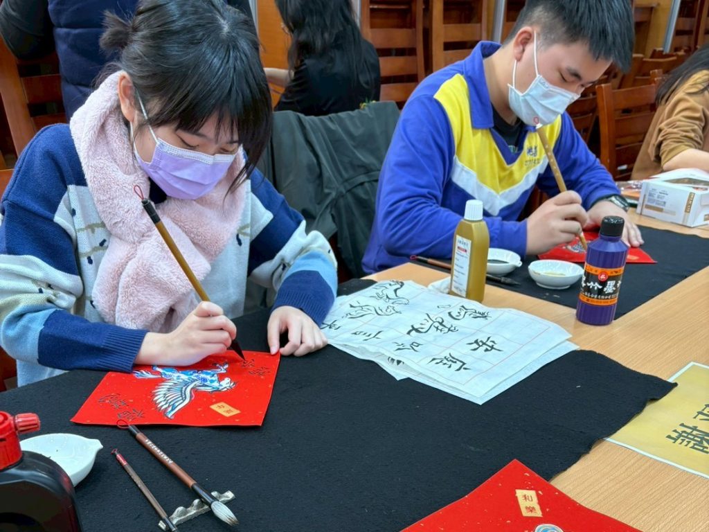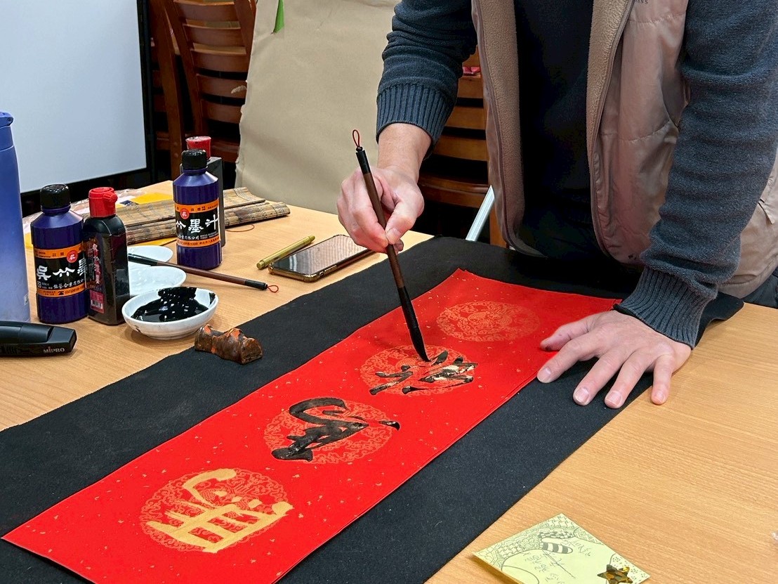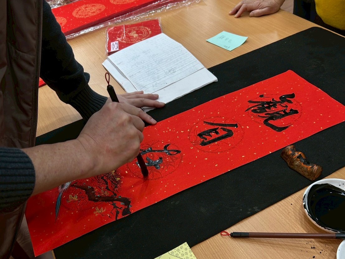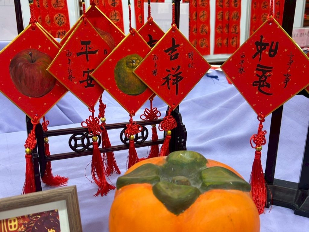當天活動剛開始,人潮便絡繹不絕,春聯與掛飾很快便銷售一空。老師親筆揮毫的桌前排起長龍,紅紙鋪開、墨香瀰漫,大家耐心等候,一邊與老師閒話家常,滿心期待著那份對來年的祝福。