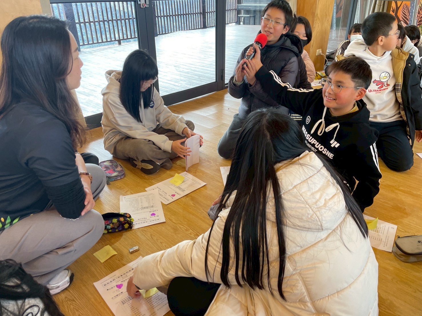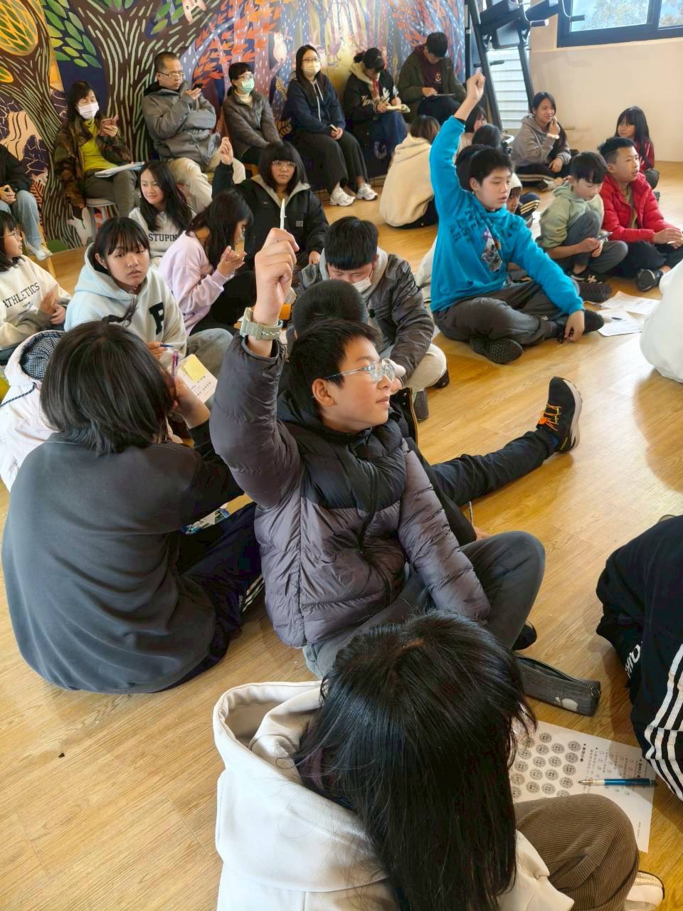 1/24 下午| 炯哥和大家深入探討下學期主題「愛」的核心概念,隨即展開各組燒腦討論。